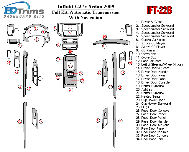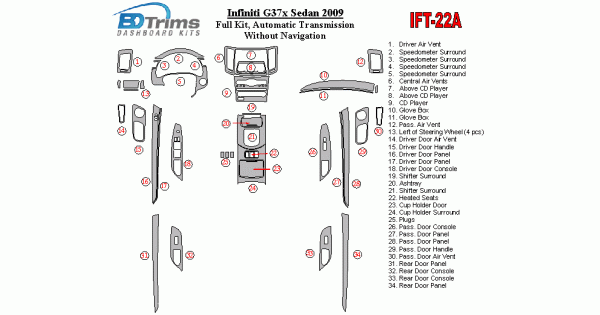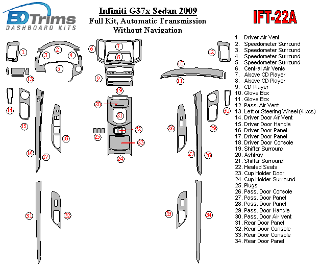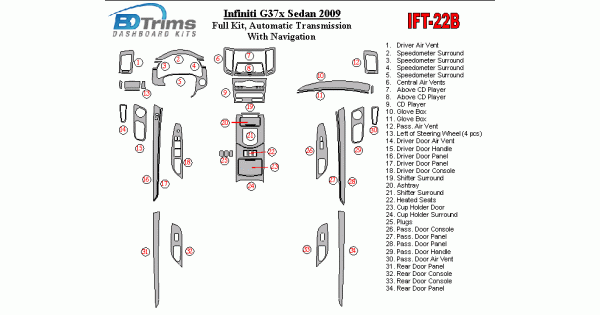 Infiniti G37x Sedan 2009 - 2009 Dash Trim Kit