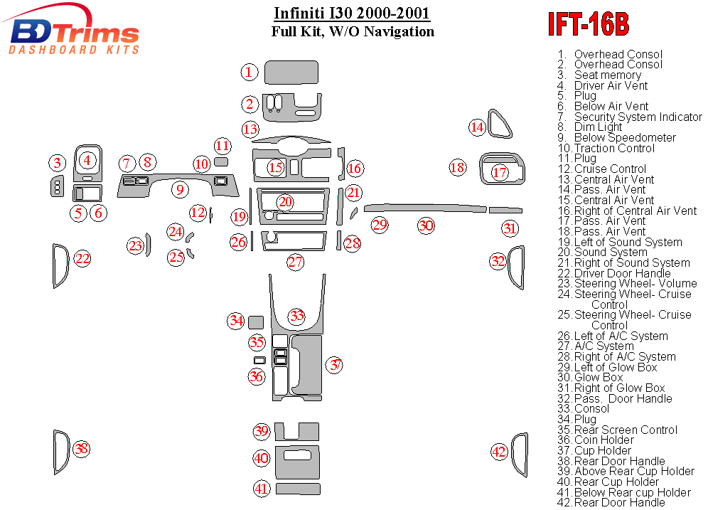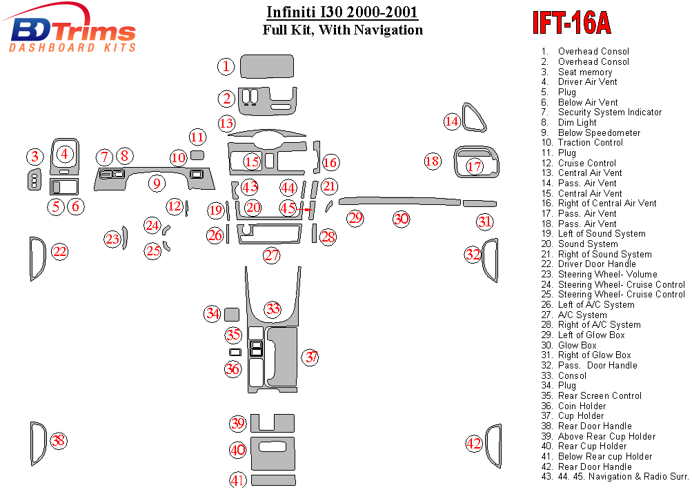 Infiniti I30,35 2000 - 2001 Dash Trim Kit