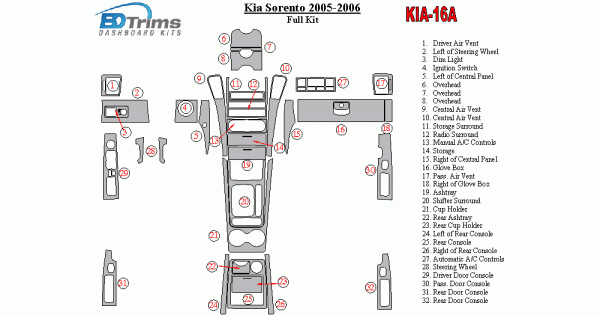 Kia Sorento 2005 - 2006 Dash Trim Kit