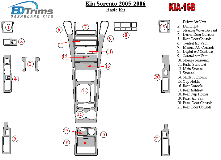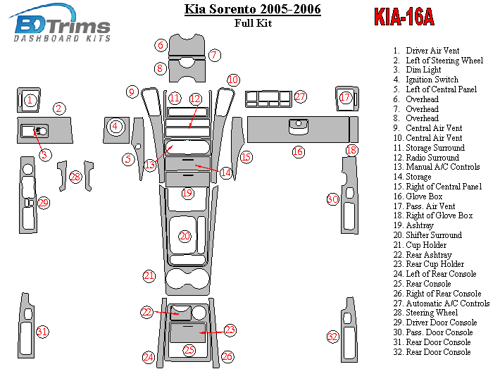 KIA Sorento 2005 - 2006 Dash Trim Kit