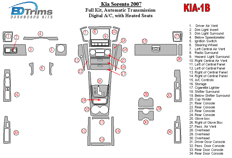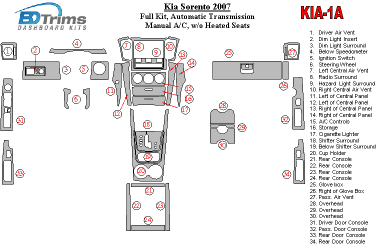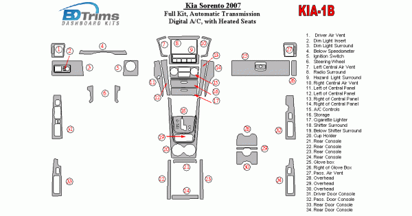 KIA Sorento 2007 - 2007 Dash Trim Kit