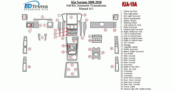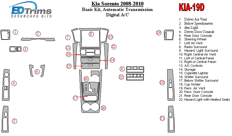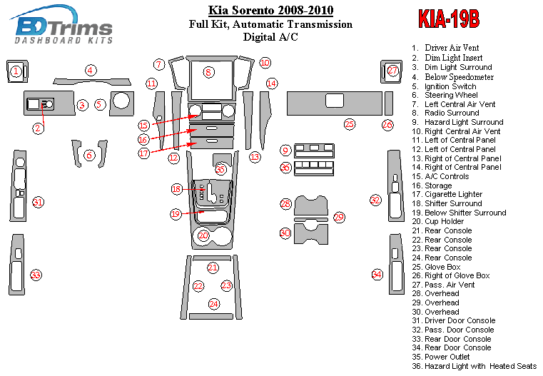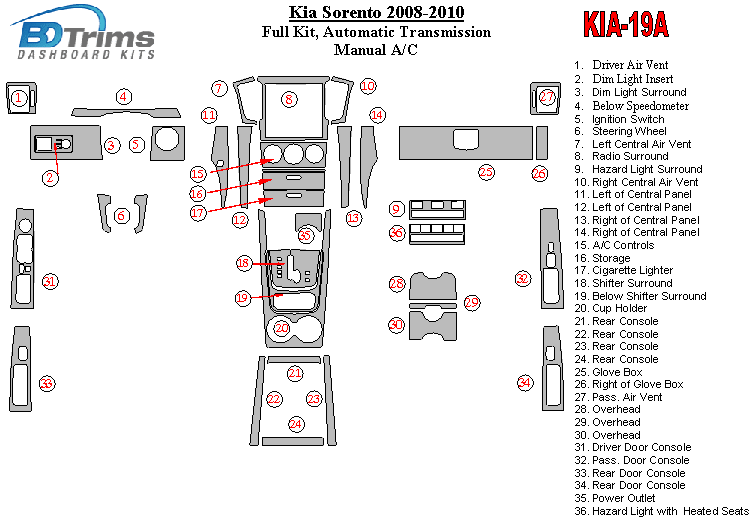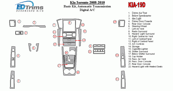 KIA Sorento 2008 - 2010 Dash Trim Kit