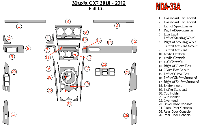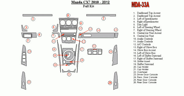 Mazda CX7 2010 - 2012 Dash Trim Kit