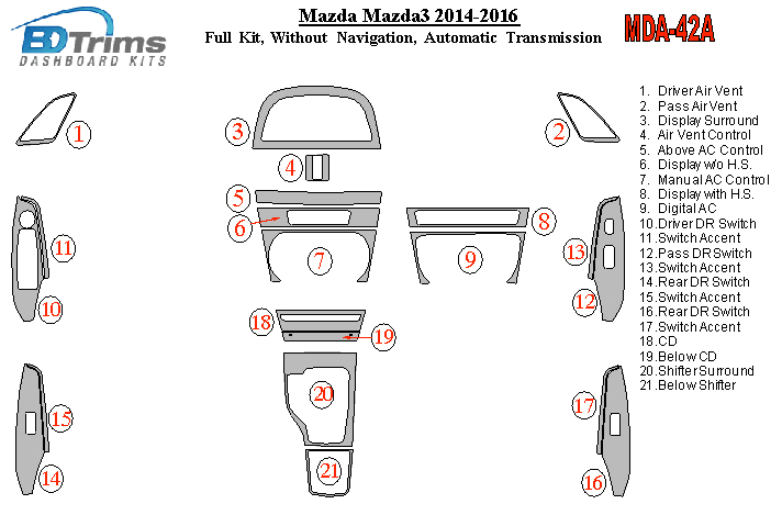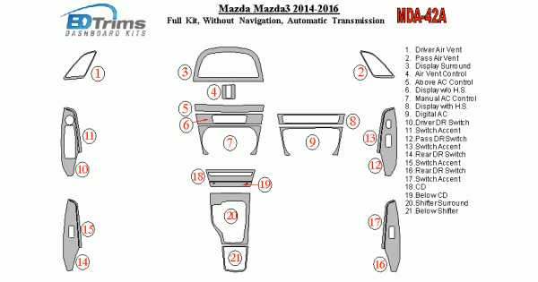 Mazda Mazda3 2014 - 2016 Dash Trim Kit