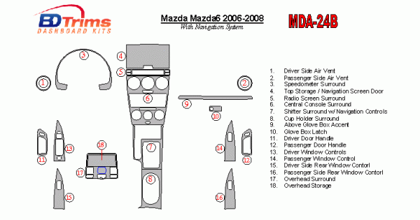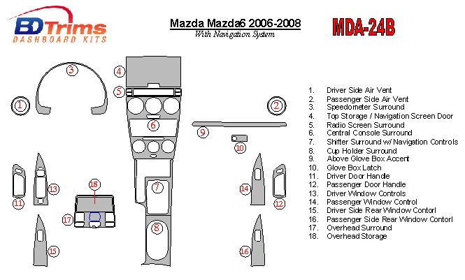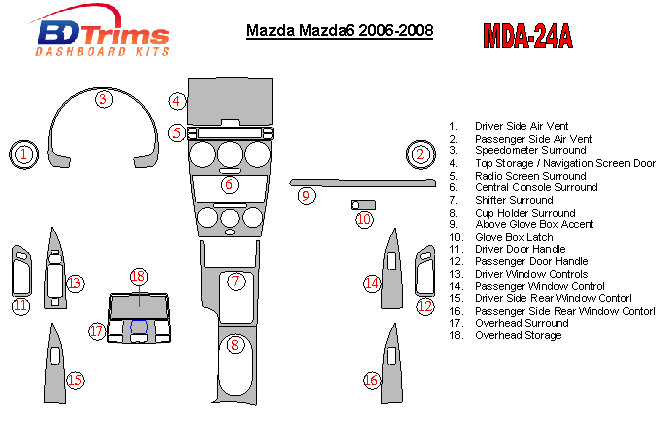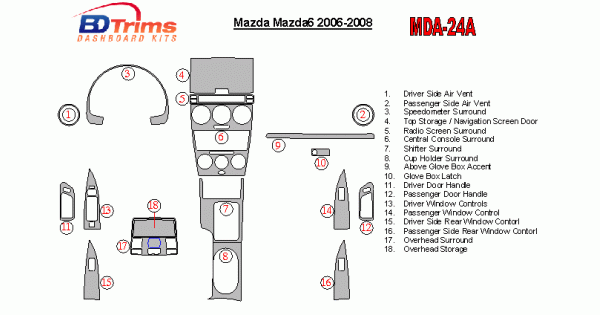 Mazda MAzda6 2006 - 2008 Dash Trim Kit