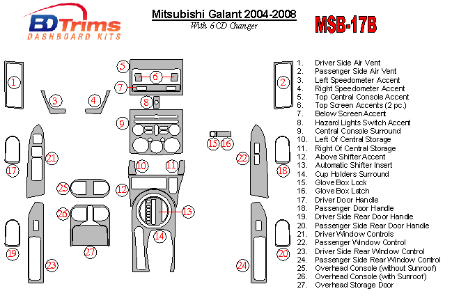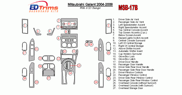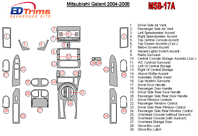 Mitsubishi Galant 2004 - 2008 Dash Trim Kit