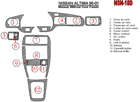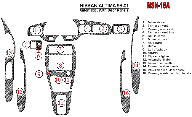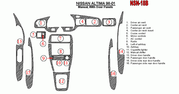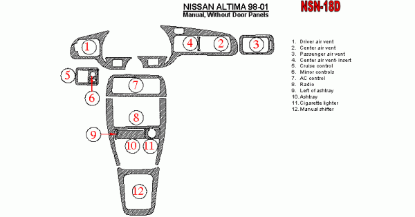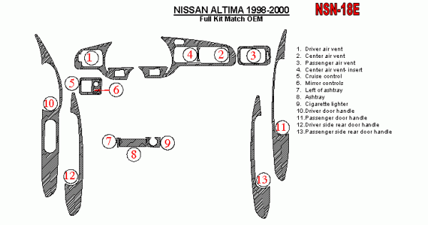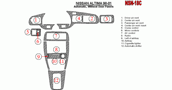 Nissan Altima 1998 - 2001 Dash Trim Kit
