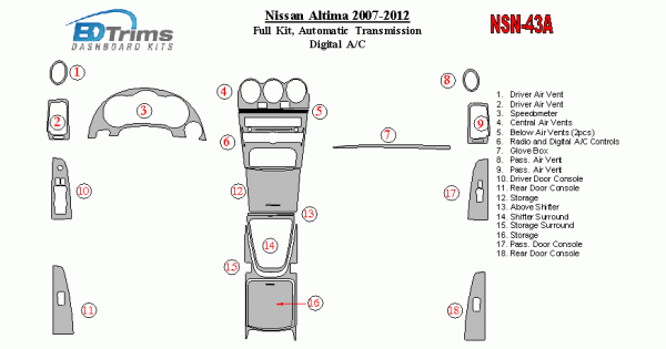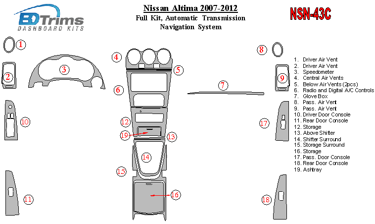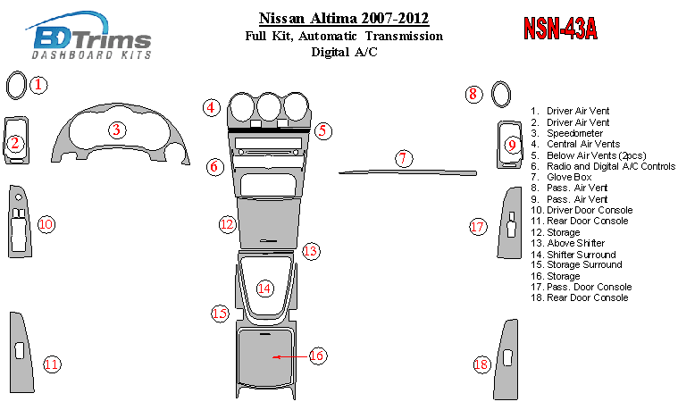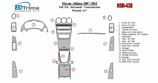 Nissan Altima 2007 - 2012 Dash Trim Kit