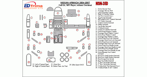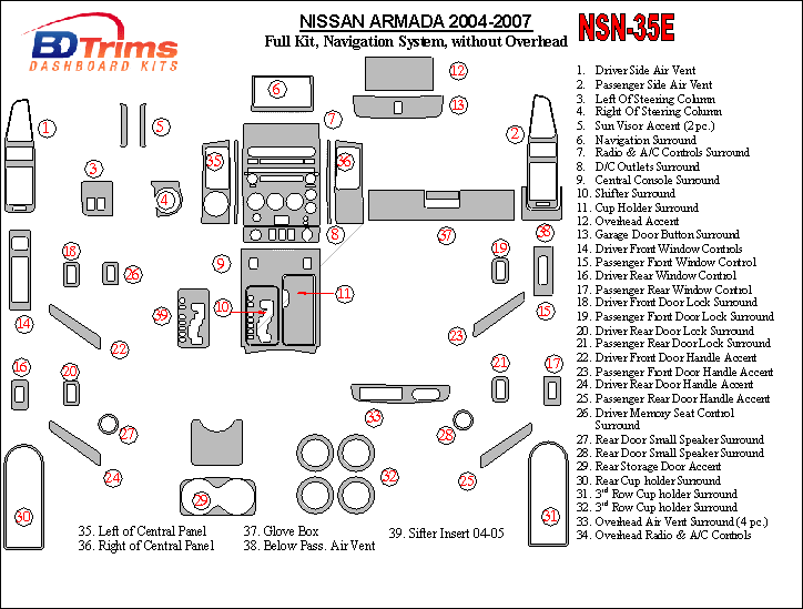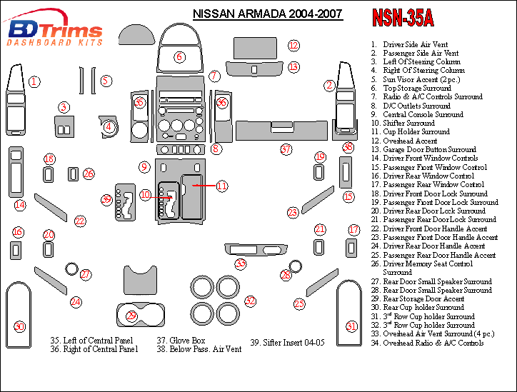 Nissan Armada 2004 - 2007 Dash Trim Kit