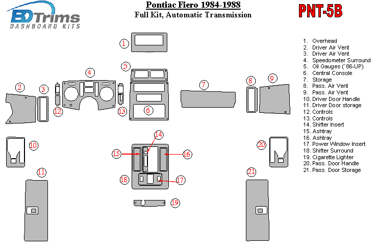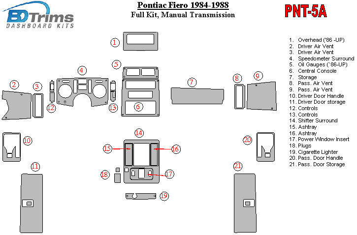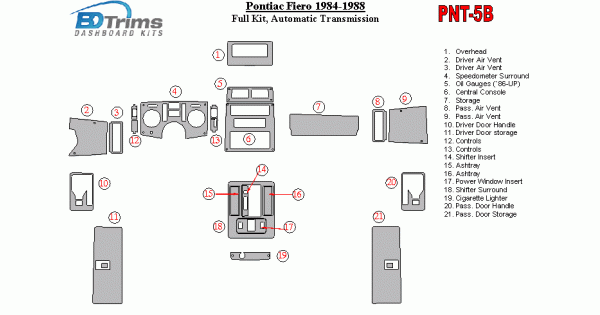 Pontiac Fiero 1984 - 1988 Dash Trim Kit