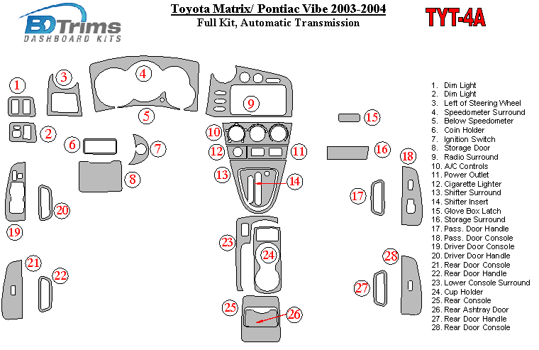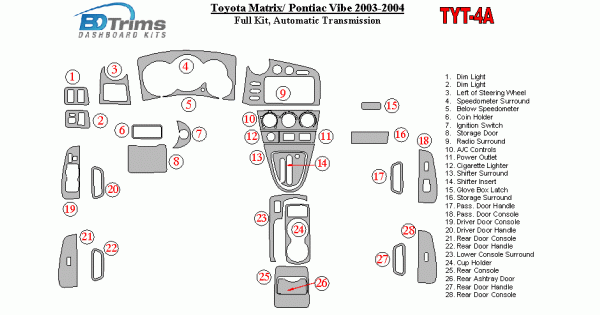 Pontiac Vibe 2003 - 2004 Dash Trim Kit