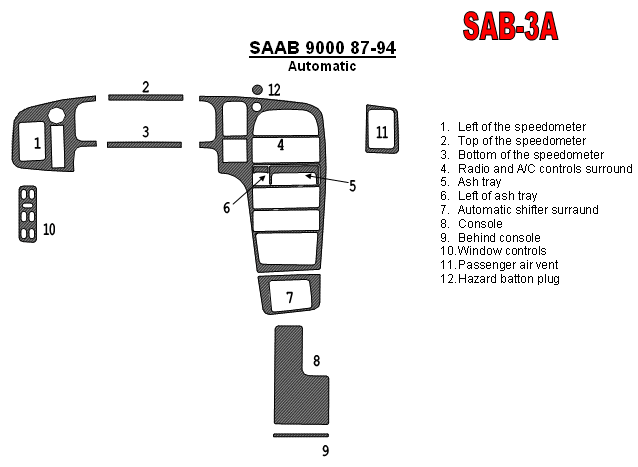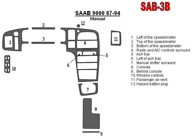 Saab 9000 1987 - 1994 Dash Trim Kit