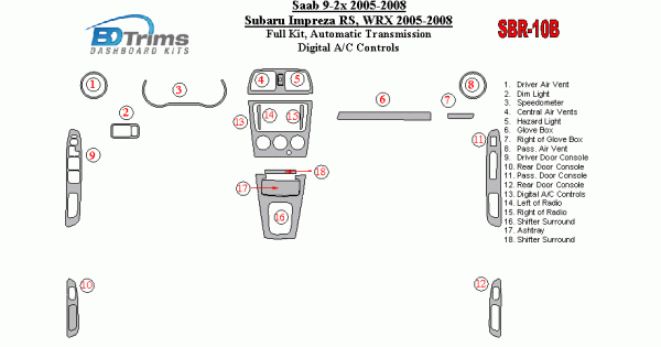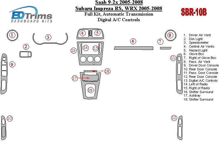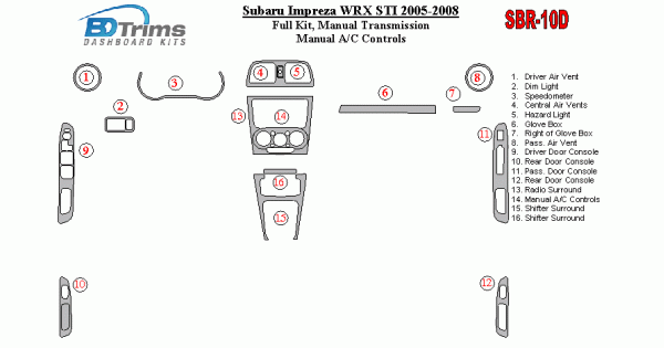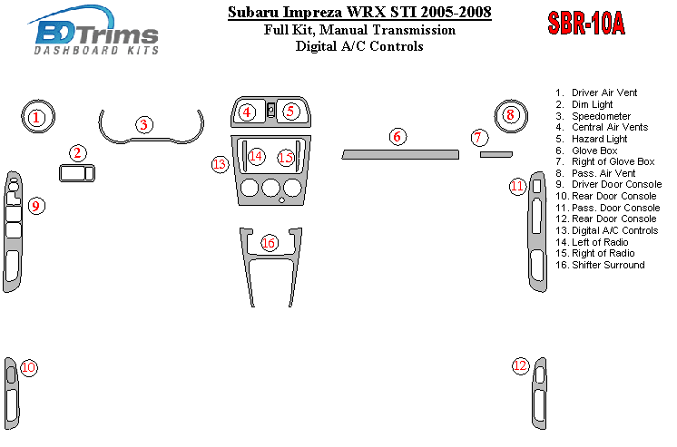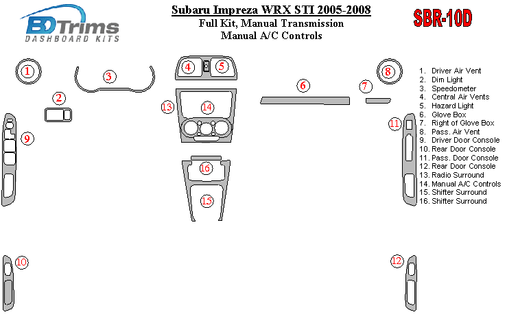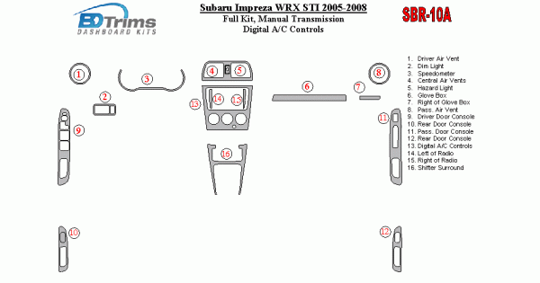 Subaru Impreza WRX 2005 - 2008 Dash Trim Kit