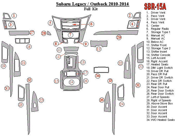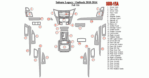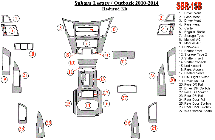 Subaru Legacy 2010 - 2014 Dash Trim Kit