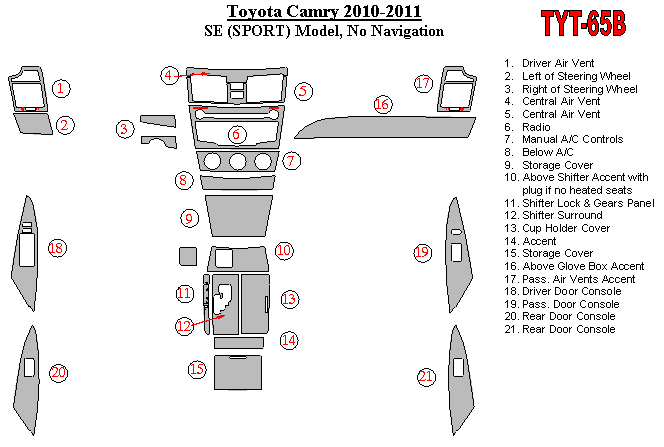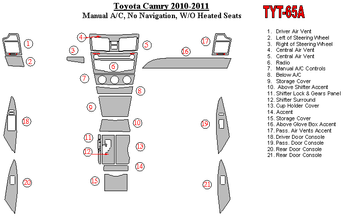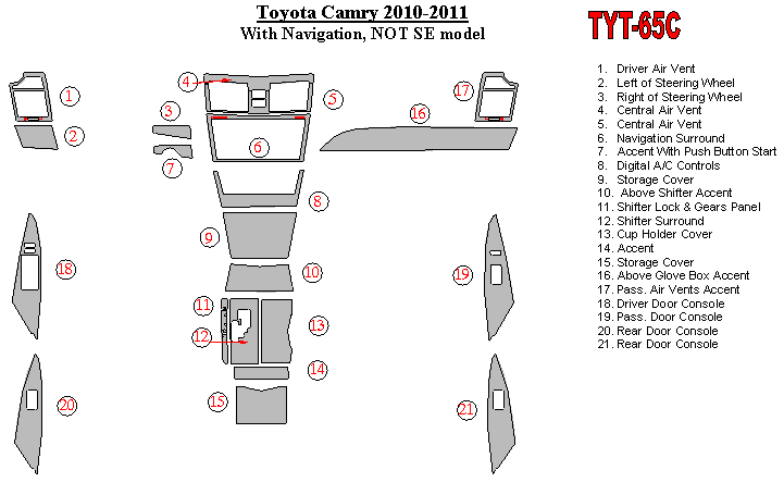Toyota Camry 2010 - 2011 Dash Trim Kit