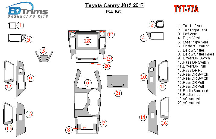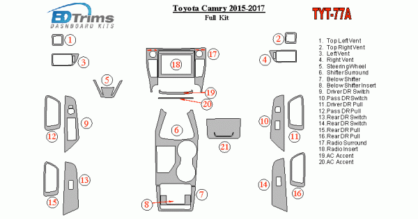 Toyota Camry 2015 - 2017 Dash Trim Kit