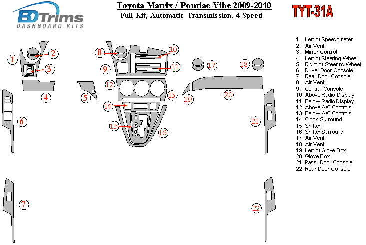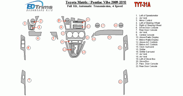 Toyota Matrix 2009 - 2010 Dash Trim Kit