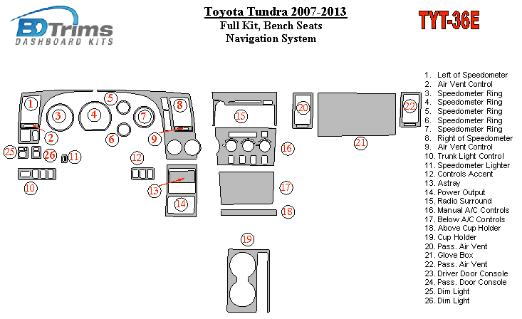 Toyota Tundra 2007 - 2013 Dash Trim Kit