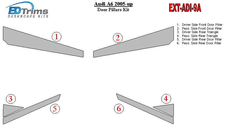 Audi A6 2005-UP Exterior Door Window Pillar Post Cover Trim