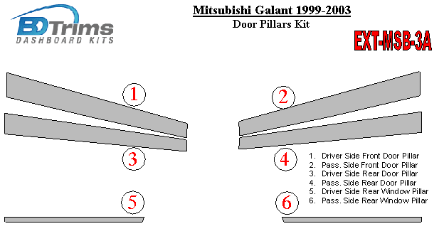 Mitsubishi Galant 1999-2003 Exterior Door Window Pillar Post Cover Trim