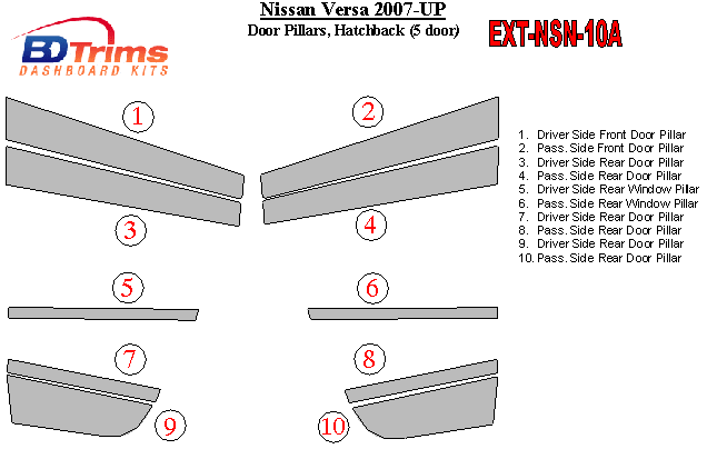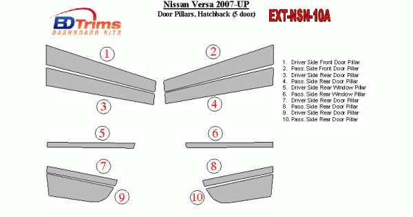 Nissan Versa 2007-UP Exterior Door Window Pillar Post Cover Trim