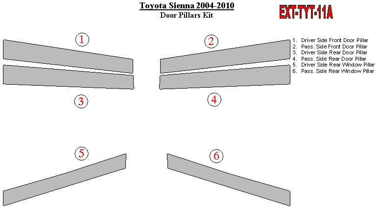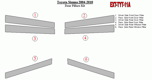 Toyota Sienna 2004-2010 Exterior Door Window Pillar Post Cover Trim