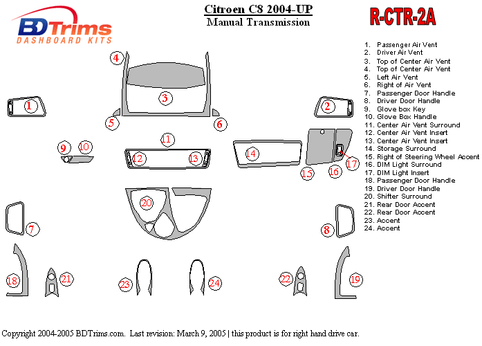 Citroen C8 2004-UP Dash Trim Kit (RHD)