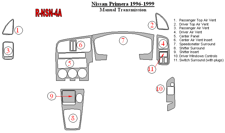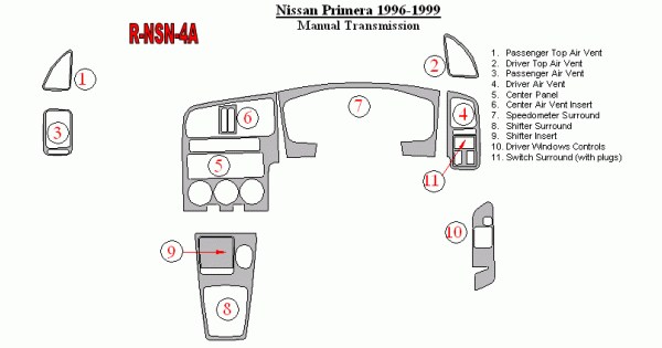 Nissan Primera 1996-1999 Dash Trim Kit (RHD)