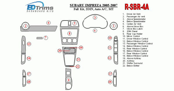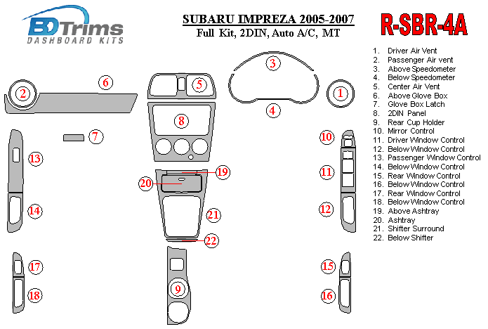 Subaru Impreza WRX 2005-2007 Dash Trim Kit (RHD)